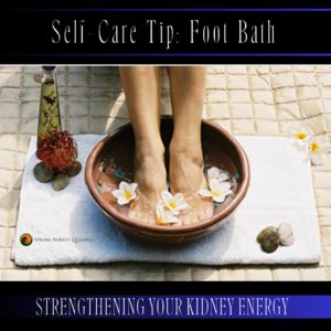A wonderful evening ritual is to soak your feet in warm-to-hot water for 10 to 20 minutes. Be careful not to make the water so hot that it burns you. This simple practice draws energy downward, calming the mind and preparing the body for deep, restorative sleep. It is especially beneficial for anyone with Kidney, Liver, or Heart imbalances.