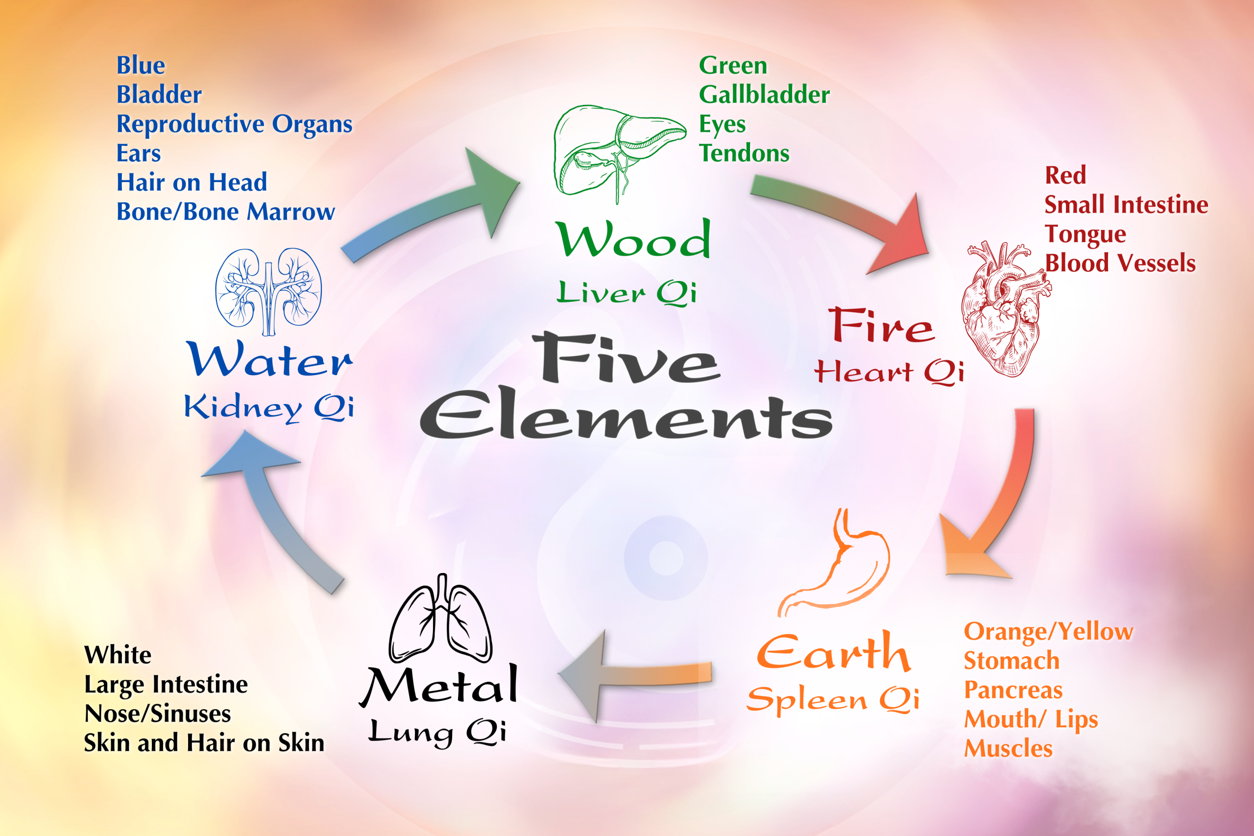 Metal, Wood, Water, Fire, Earth